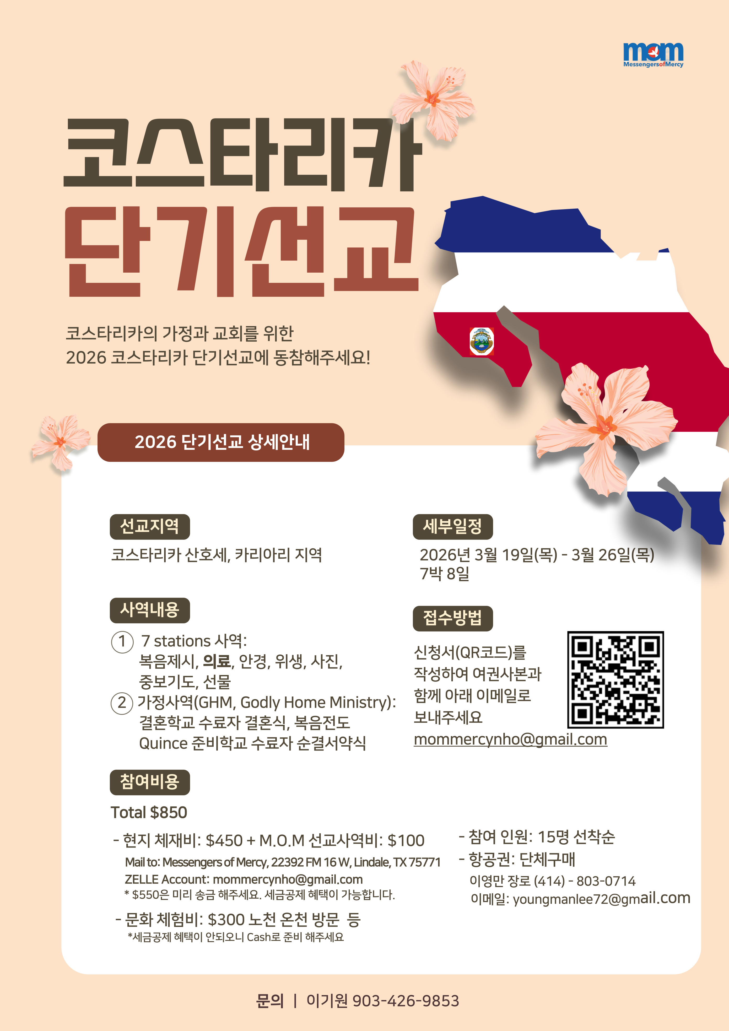 2025년 코스타리카 GHM사역 단기선교에 초대합니다!